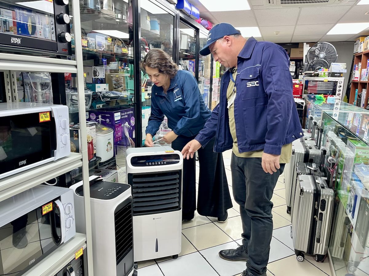 Durante la inspección, la SEC revisó especialmente la presencia del “Sello SEC” en los artefactos eléctricos, que permite identificar productos que se encuentran dentro del sistema de certificación obligatoria, es decir, equipos evaluados conforme a exigencias técnicas y de seguridad vigentes del país.