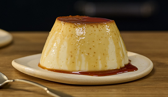 - Para desmoldar, pasar un cuchillo por el borde entre el flan y el molde, poner un plato sobre el molde y dar vuelta para servir.