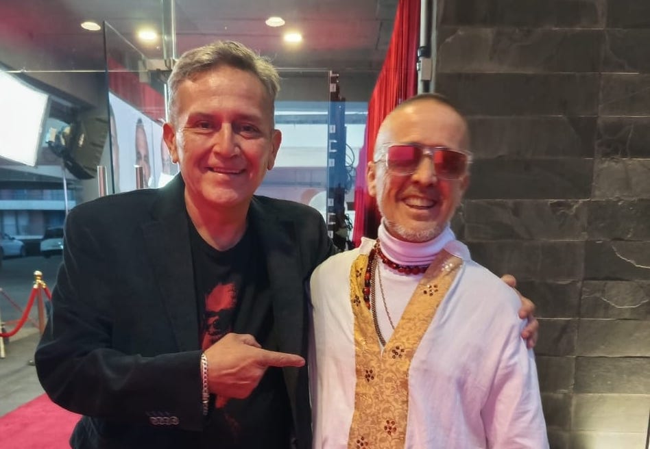 Rodrigo Miranda con el cantante top Leo Rey compartiendo gratos momentos en la cena anual de la Sociedad Chilena de Autores e Intérpretes Musicales (SCD).