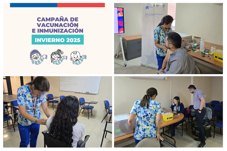 Con el objetivo de fortalecer el bienestar y la prevención sanitaria en el entorno laboral, la Defensoría Regional de Tarapacá gestionó por intermedio de su Encargado Regional de Comunicaciones un operativo de vacunación dirigido a funcionarias, funcionarios, profesionales con convenio directo y personal licitado, realizado con el apoyo de CORMUDESI y del personal de salud del CESFAM Cirujano Guzmán de Iquique.