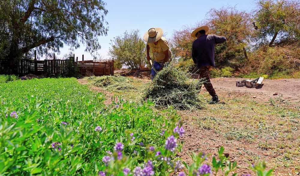 –Integrantes de la Colonia Agrícola de Pintados hicieron entrega de alfalfa a sus pares de la comunidad de Quillagua, consolidando una relación de cooperación e intercambio cultural que contó con el apoyo de SQM.