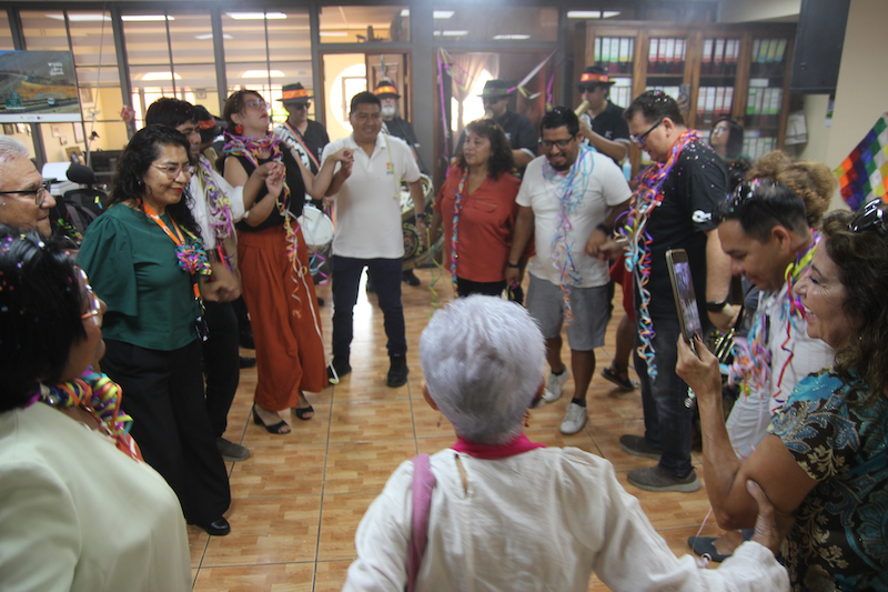 Tras la participación de la máxima autoridad regional, los consejeros regionales y el equipo de la Secretaria Ejecutiva se sumaron al rito, vertiendo vino en los cuatro puntos cardinales de la mesa y sahumando las dependencias. El recorrido finalizó en el Salón Plenario «Lucio Condori», espacio nombrado en honor al recordado consejero regional.