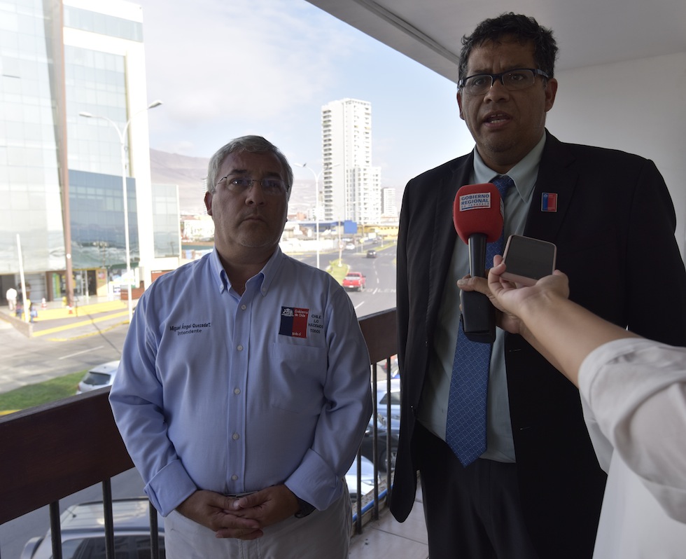 El Intendente de Tarapacá, Miguel Ángel Quezada junto al seremi de Salud, Manuel Fernández.