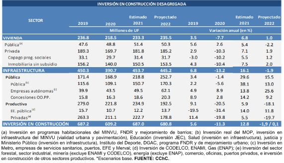 De acuerdo al informe de la CChC, el mejor escenario para este 2022 sería que la inversión en construcción no se volviera a contraer. De lo contrario, el gremio estima que la inversión sectorial podría presentar una caída de hasta 2%, aproximadamente.