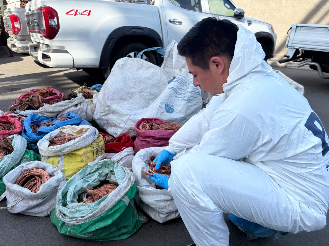 Detectives de la Brigada Investigadora de Robos Arica, en el marco de una investigación con la Unidad de Análisis Criminal y Focos Investigativos de la Fiscalía de Arica, incautaron más de 2.5 toneladas de cable de cobre robado, sustraído en su gran mayoría desde el tendido eléctrico.