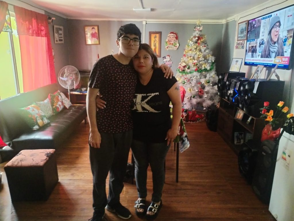 Dylan Muñoz Brito junto a su madre, Gisella Brito. «Todo se puede con esfuerzo y responsabilidad», dijo la mamá del estudiante iquiqueño que logró puntaje máximo nacional. (Foto del reportero Jorge Solimano)