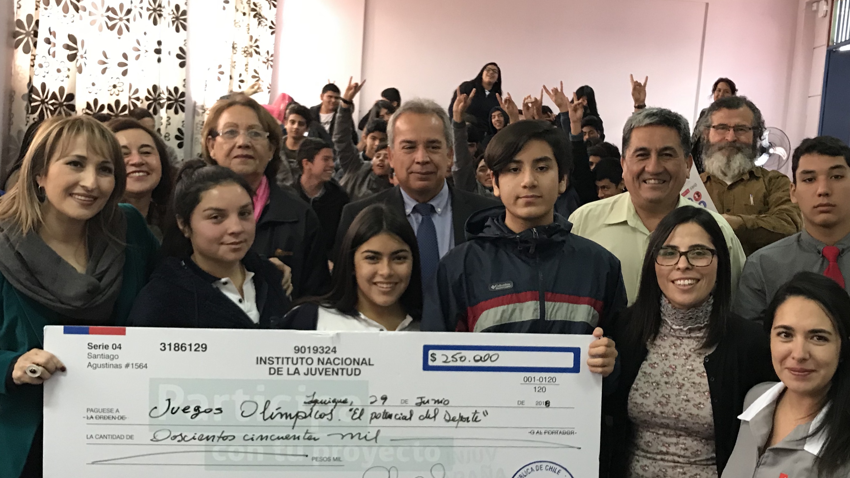 Con la entrega de un cheque simbólico para financiar su proyecto, ganador de una nueva edición del programa de Escuela de Ciudadanía del Instituto Nacional de la Juventud (INJUV) en Iquique, estudiantes del Liceo Luis Cruz Martínez podrán llevar a cabo la instancia “Juegos Olímpicos. Un potencial deportivo.”