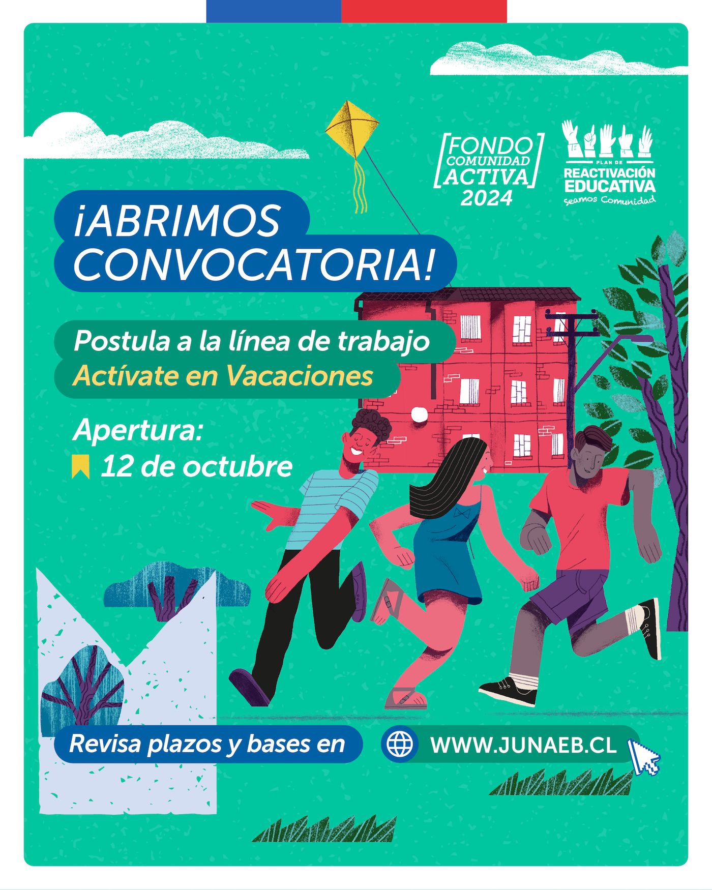 La Junta Nacional de Auxilio Escolar y Becas (JUNAEB) anunció que se encuentra abierta la convocatoria al fondo “Actívate en Vacaciones”, que busca financiar proyectos que estén orientados a desarrollar intervenciones psicosociales a estudiantes de primer y segundo ciclo básico de establecimiento públicos, municipales y particulares subvencionados.