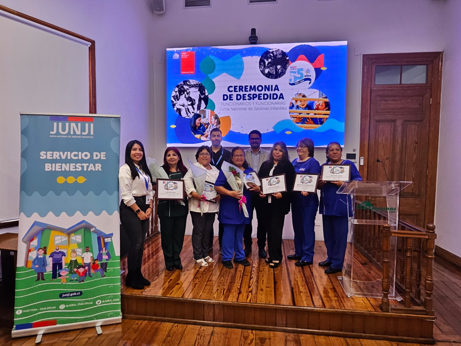 En una emotiva ceremonia realizada en el salón de la Compañía Minera Collahuasi, la Dirección Regional de JUNJI Tarapacá despidió a seis destacadas funcionarias que, tras años de servicio en los jardines infantiles de la institución, se acogieron a jubilación.
