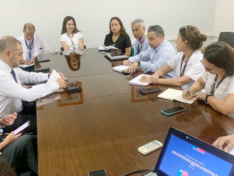 La directora del Servicio de Salud Arica y Parinacota (SSAP), Patricia Sanhueza, lideró la mesa de seguridad sobre prevención y tratamiento de las agresiones a funcionarios del sistema público de salud, en la que también participó el SEREMI de Seguridad Pública, Pedro Álvarez, el director del hospital, Pedro Bahamondes, y la directora de salud municipal de Arica (DISAM), Claudia Villegas.