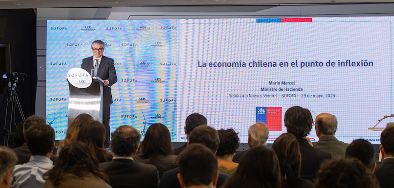 Este jueves el ministro Marcel participó del seminario “Nuevos vientos de la Economía 2025”, organizado por la Sociedad de Fomento Fabril (Sofofa) y la Universidad del Desarrollo (UDD), donde expuso una presentación llamada “La economía chilena en el punto de inflexión”.