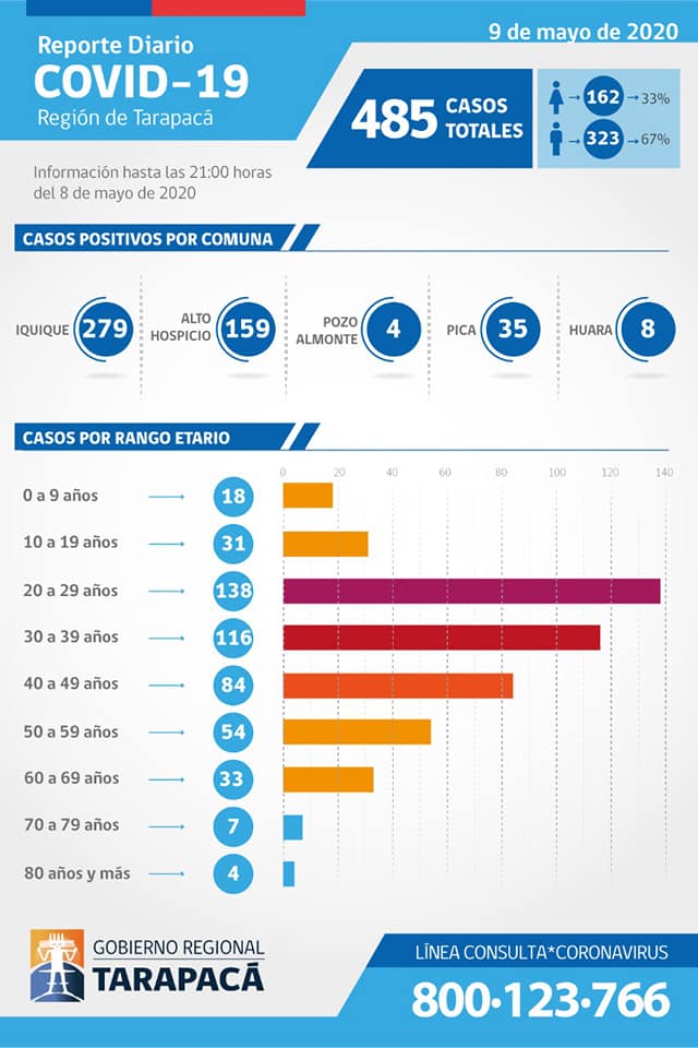 El Intendente de Tarapacá, Miguel Ángel Quezada, confirmó en el informe después de las 13 horas, 26 nuevos casos entre las comunas de Iquique, Alto Hospicio y Pica, llegando en total regional a 485 contagiados, con un deceso.