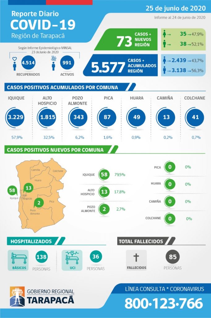 También se registraron nueve víctimas en la Región de Antofagasta, ocho en Valparaíso, cuatro en Coquimbo, cuatro en O’Higgins y dos en el Biobío. Y se reportó una víctima en cada una de estas regiones: Arica y Parinacota, Tarapacá, Ñuble y Los Lagos. La mayoría de las víctimas (el 88%) tienen 60 años o más, aunque también se reportaron dos muertes de personas menores de 40 años. En las últimas 24 horas se sumaron además 4.648 casos nuevos en el país, contabilizándose 259.064 contagiados desde el inicio de la pandemia.