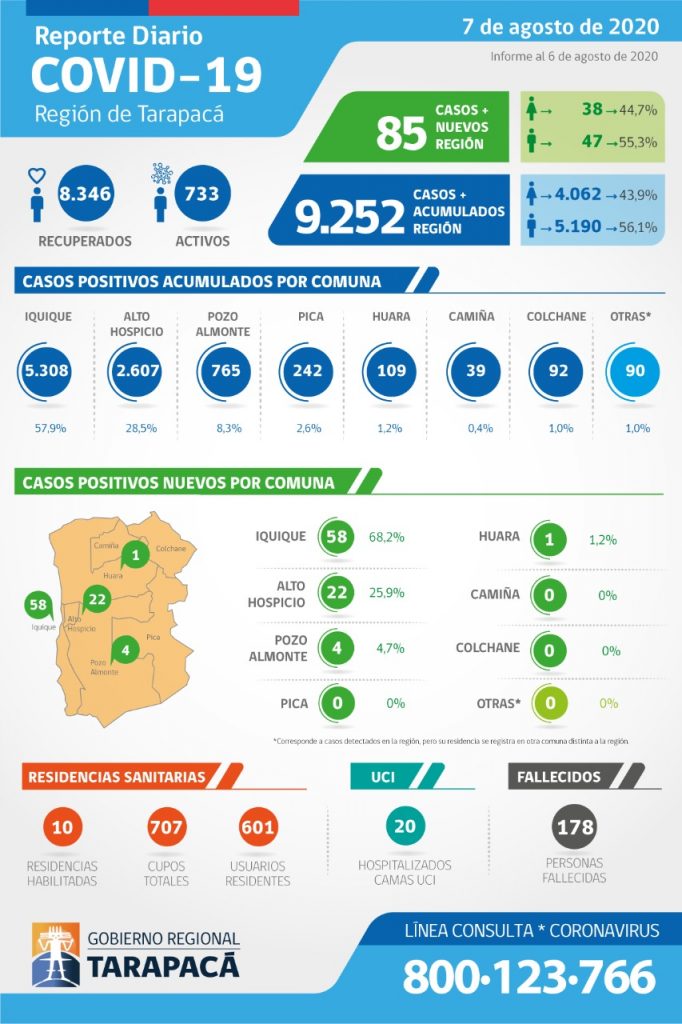 En esta región 29 de 30 comunas se encuentran en fase 3 y felicitamos a toda la comunidad», afirmó el secretario de Estado. De acuerdo al balance, los pacientes internados en las unidades de cuidados intensivos de la red integrada covid son 1.348, de éstos 233 se encuentran en estado crítico. «Tenemos 539 ventiladores mecánicos disponibles», añadió por su parte Zúñiga. «Las residencias sanitarias en el país son 158 con 10.933 cupos disponibles», informó, añadiendo que hay 5.389 utilizados.