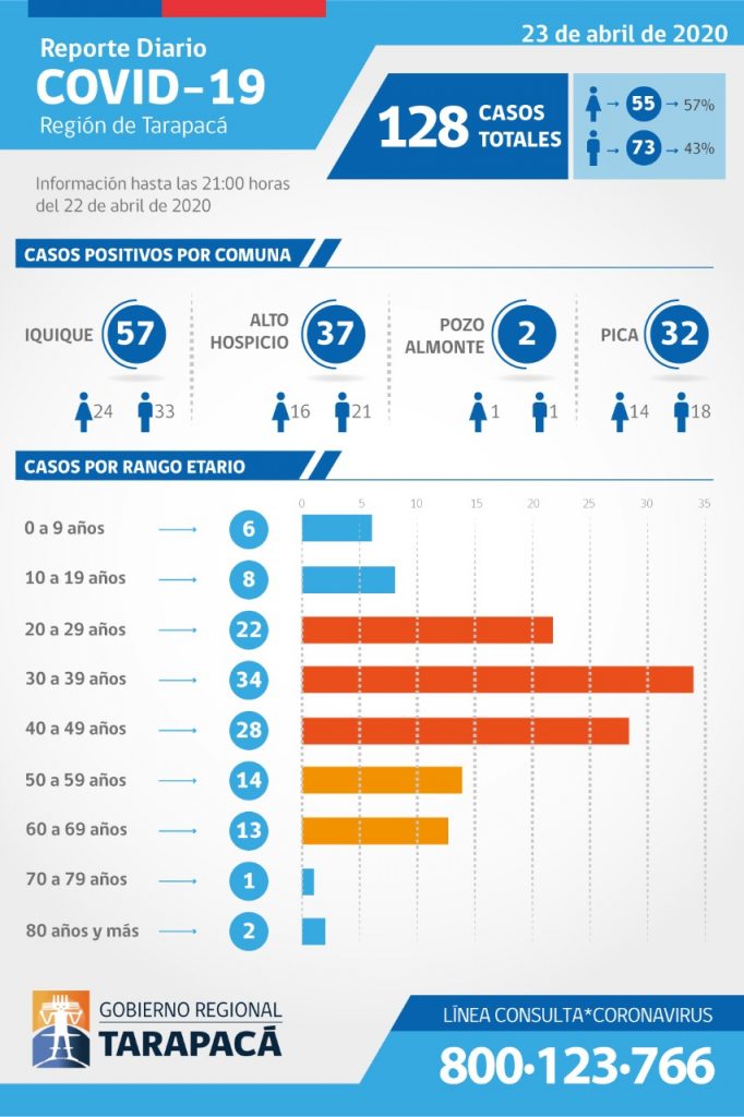 Catorce nuevos casos de Covid-10 se sumaron a los ya registrados en la Región de Tarapacá, según informó en su balance diario el Intendente Miguel Ángel Quezada, llegando a la fecha a 128.