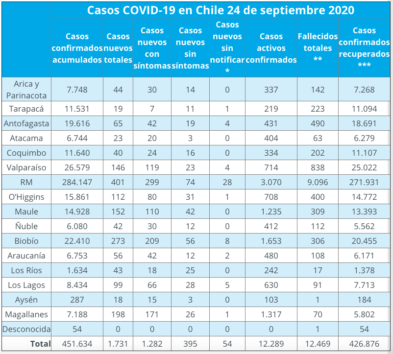 De acuerdo al reporte, a la fecha 451.634 personas han contraído el SARS-CoV-2 desde el primer caso en la Región del Maule, de los cuales 426.876 «se han recuperado». Mientras que los casos activos, es decir, aquellos capaces de diseminar el virus son 12.289.