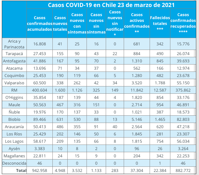 Los casos activos llegan actualmente a 37.304 y los contagios acumulados desde el inicio de la pandemia ascienden a 942.958.