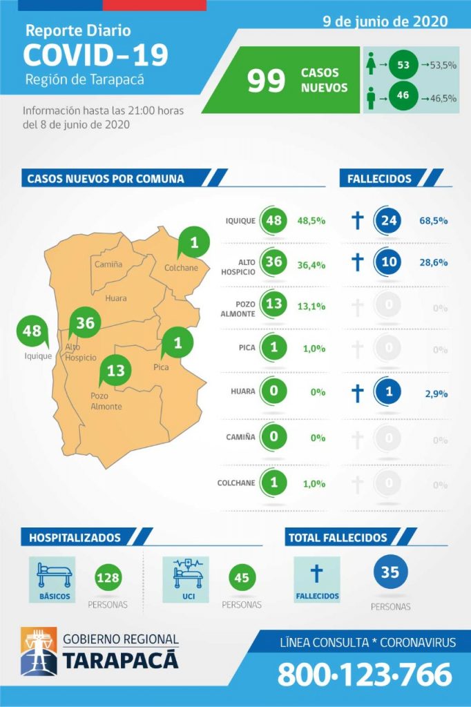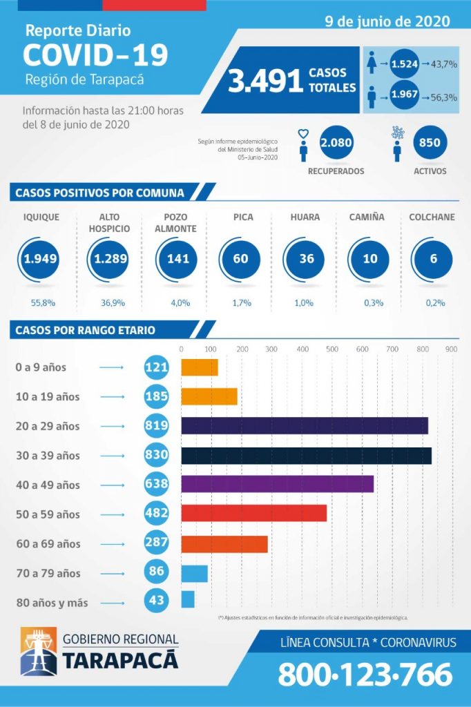 MINSAL reportó hoy 19 decesos por covid, pero advierte que cifra se actualizará y «no debe interpretarse» como una baja; Tarapacá registró 99 casos nuevos y llega a 3.491 contagiados