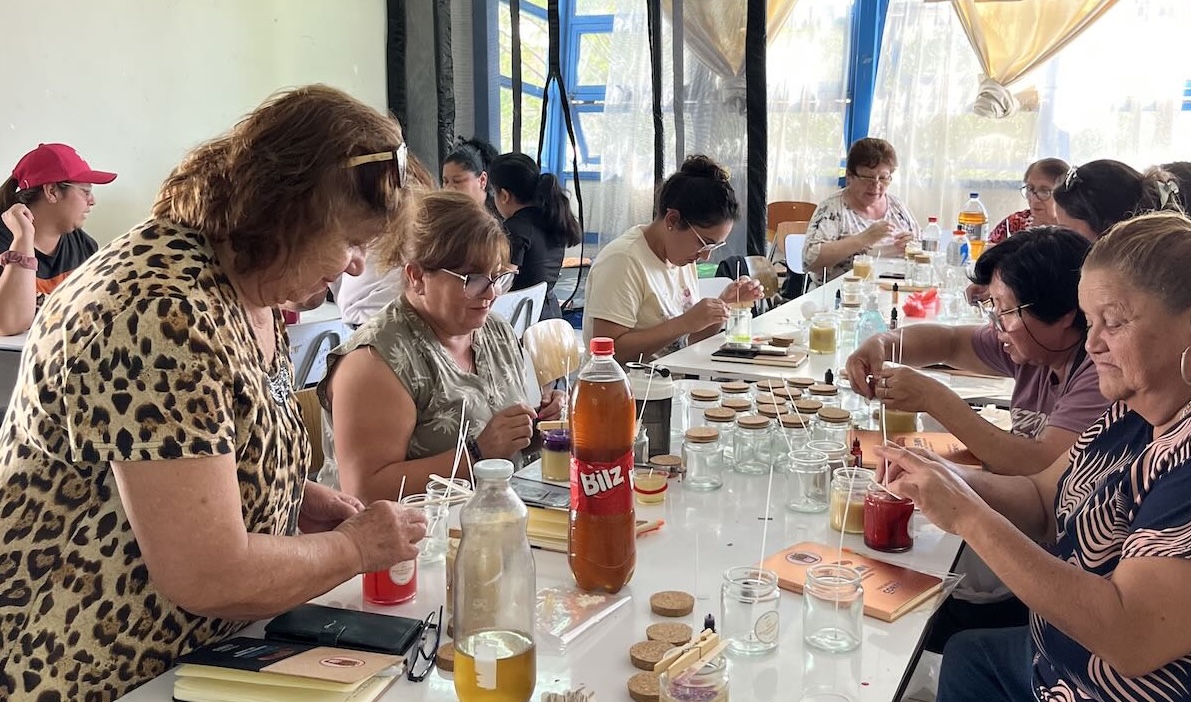 El encuentro finalizó con la elaboración de velas decorativas e iniciadores de fuego, que las participantes pudieron llevar consigo como primeros productos creados a partir del aceite reutilizado.