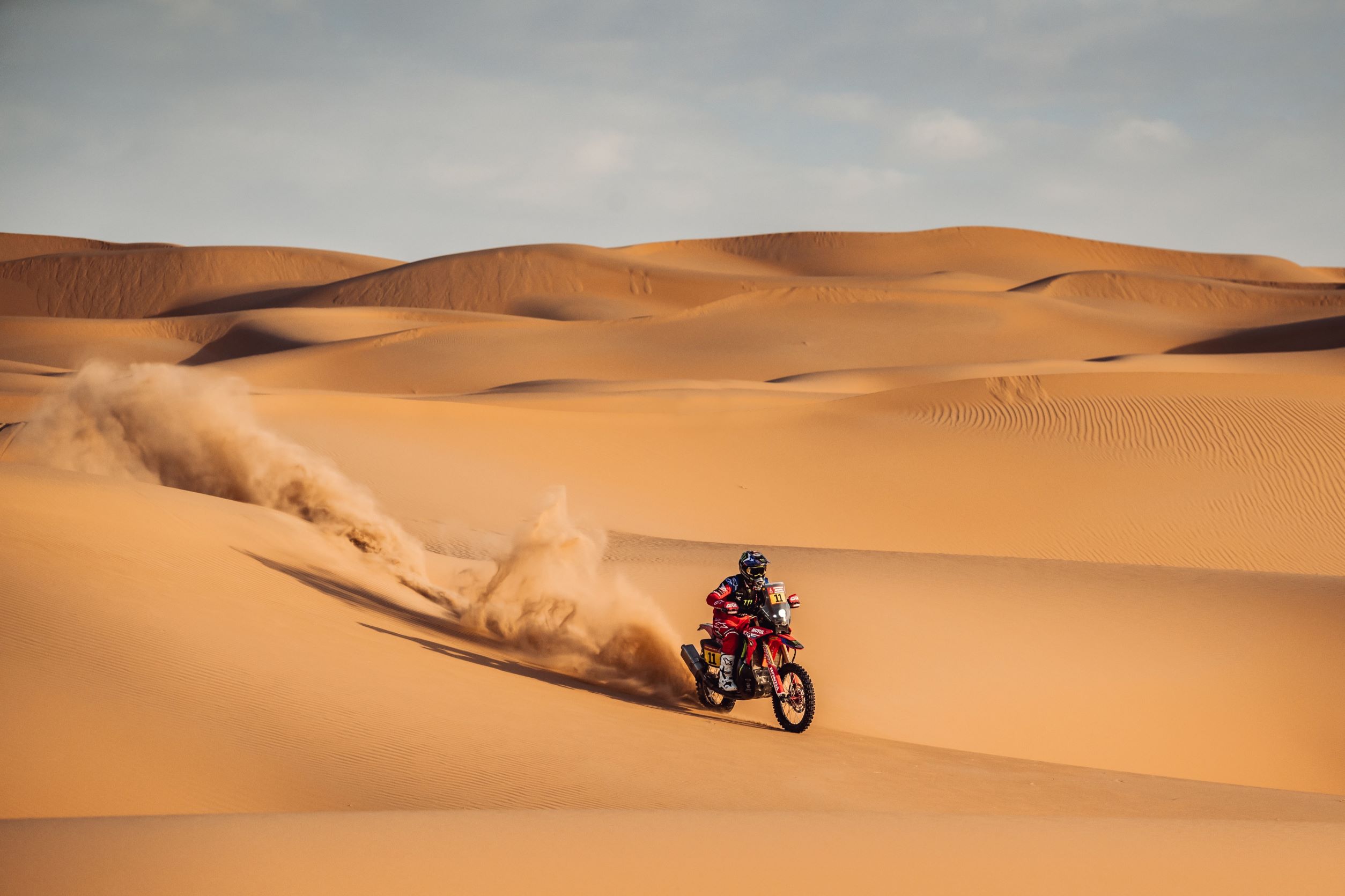 SANTIAGO / AL-HOFUF / Arabia Saudita / 14 de enero de 2023.- La penúltima etapa no fue la mejor para el iquiqueño José Ignacio Cornejo (Monster Energy Honda Team). Luego de ganar la número 12, tuvo que salir a abrir pista por los cordones de dunas del Empty Quarter, una misión difícil que lo relegó al puesto 12° en la jornada sabatina de 154 kilómetros de especial, quedando finalmente 8° en la general a 28’28” del líder, el australiano Toby Price.