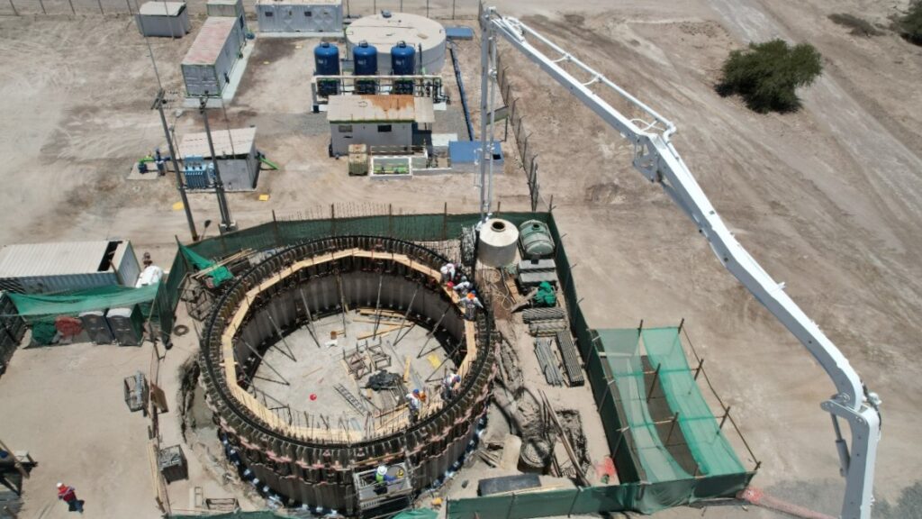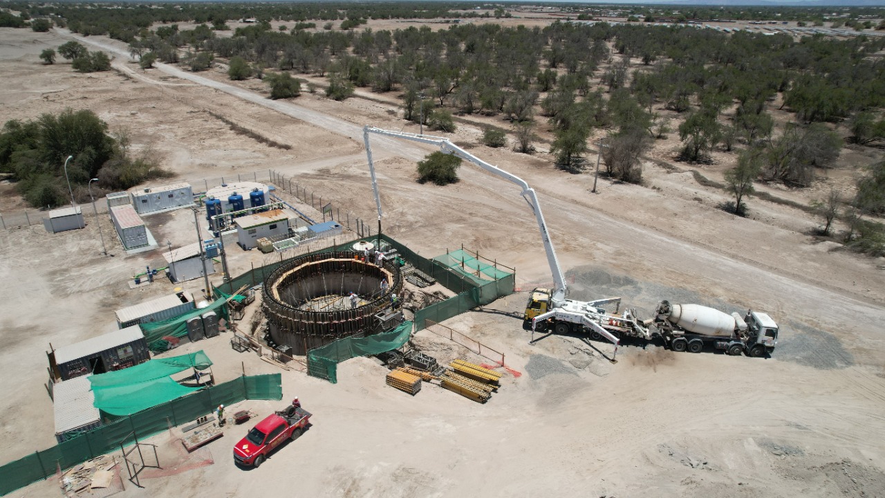Según lo indicado por Verónica Ramírez Riquelme, Inspector Técnico de Obra de Aguas del Altiplano, actualmente se avanza en el proceso de hormigonado de las paredes del estanque para luego finalizar con la construcción de la loza superior de la estructura.