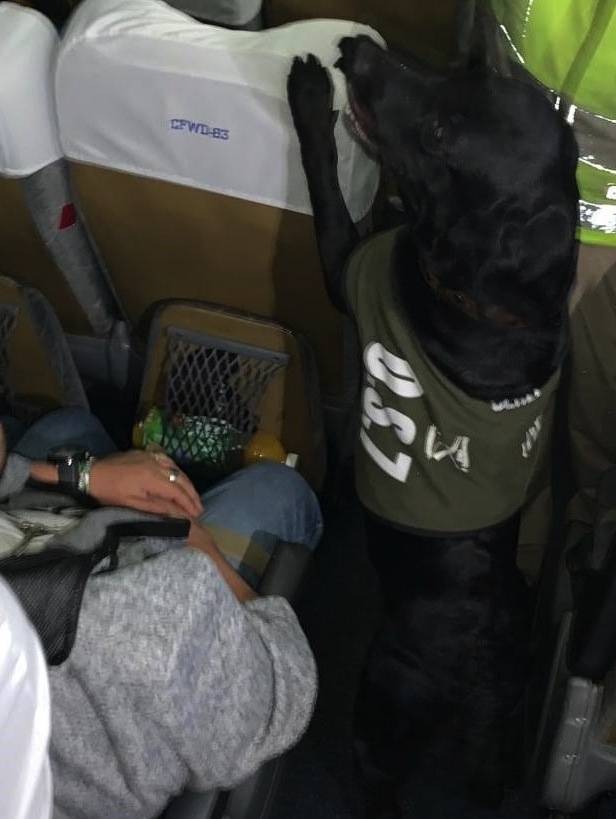 Fue en ese control, donde apoyados por la ejemplar canino “Delhi”, detector de drogas, procedieron a la fiscalización de los pasajeros. El ejemplar, por su habilidad y adiestramiento, realizó una marcación positiva al equipaje de dos hombres.