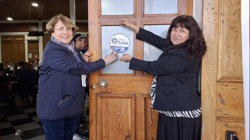 Por esta razón, la Seremi de Desarrollo Social y Familia de Tarapacá, Patricia Pérez Zamorano, junto a la Directora Regional del Registro Civil en Tarapacá, Ema Moreno Chamorro, instalaron el Sello “Chile Cuida” que reconoce al SRCeI como una organización entrega un entorno más inclusivo donde las personas cuidadoras acreditadas pueden acceder de manera preferencial a las atenciones que se entregan en oficinas.