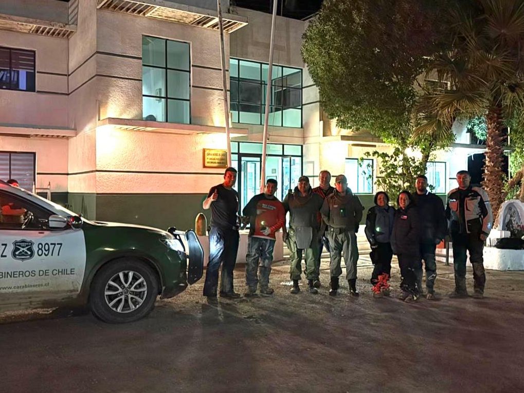 Carabineros de la Subcomisaría Huara rescataron a ocho turistas que se encontraban aislados en el kilómetro 45 de la ruta A-555, luego de que sus motocicletas quedaran en panne debido al mal estado del camino, producto de precipitaciones registradas previamente en el sector.