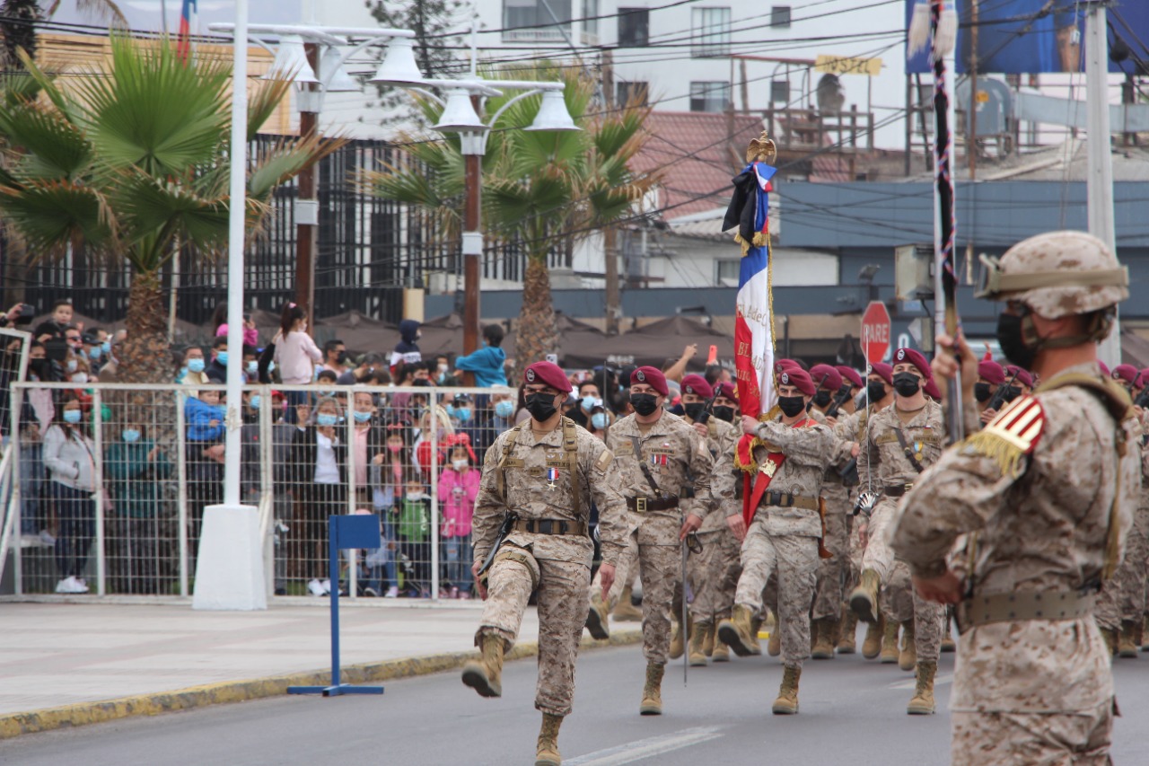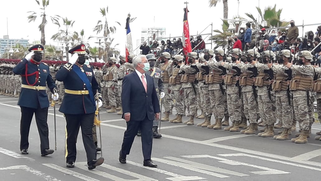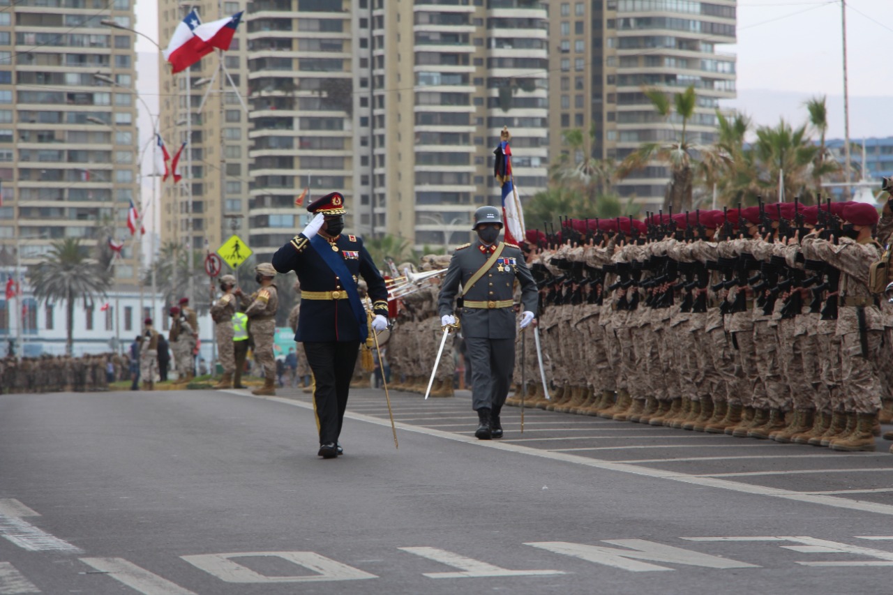 Emocionados y contentos por el regreso de la Parada Militar a la Plaza Bernardo O’Higgins en Iquique, luego de casi dos años de pandemia, se mostraron las más de mil personas que llegaron a compartir con los efectivos de la VI División del Ejército de Chile (VIDE), quienes vivieron hoy uno de los momentos más emblemáticos de la carrera militar: desfilar ante el Padre de La Patria en el aniversario de la nación. Fue así como en un acto que cumplió con todas las recomendaciones de la autoridad sanitaria producto del contexto pandemia, autoridades comunales, regionales e internacionales acompañaron también al reducido contingente de la VIDE, la IV Zona Naval de la Armada de Chile, 1era Brigada Aérea de la FACH y I Zona de Carabineros Tarapacá, quienes participaron en la Parada Militar 2021.