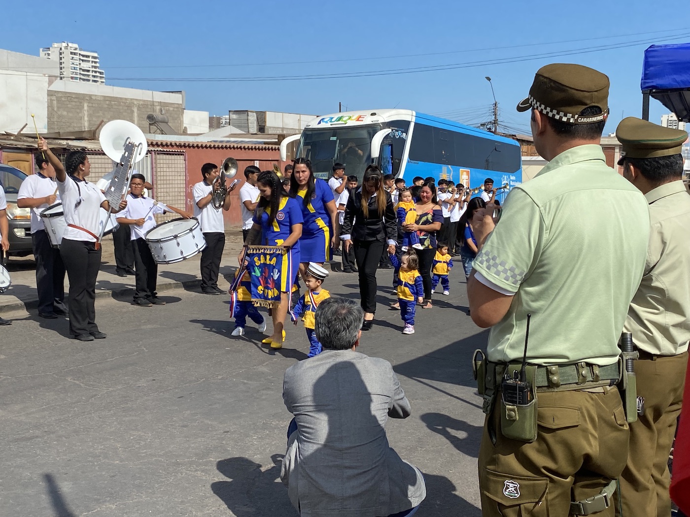 El acto y desfile se realizó en el frontis del establecimiento, ubicado en calle Videla con 18 de Septiembre, lugar hasta donde llegaron vecinos del sector, padres y apoderados más representantes de diversas entidades públicas, Carabineros, Armada y de la ZOFRI.