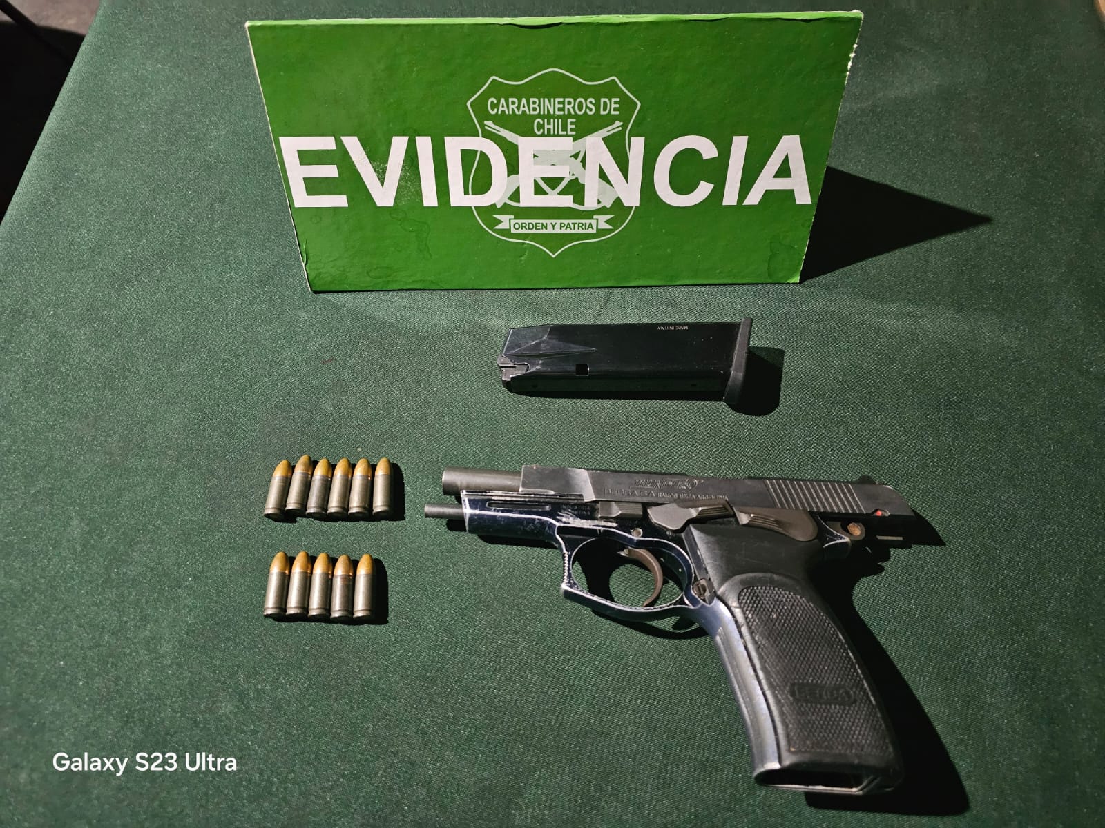 Por ello se acercaron para fiscalizarlos, observando a que uno de ellos arrojó un elemento hacia uno de los juegos, concurriendo para verificar a qué correspondía, resultando ser un arma de fuego, deteniendo a quien la portaba por el delito de porte y tenencia de arma de fuego y munición.