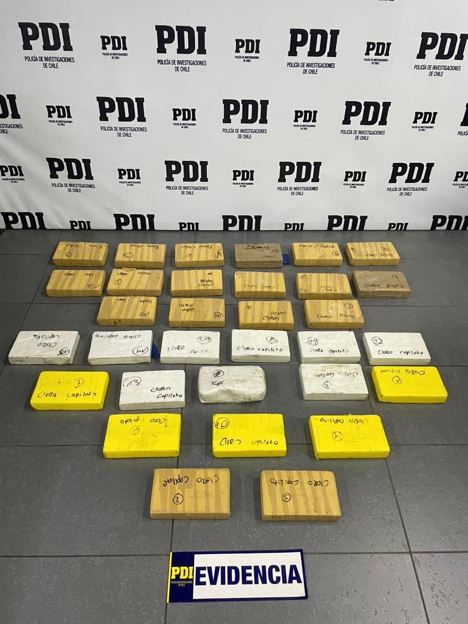Detectives de la Brigada Antinarcóticos y Contra el Crimen Organizado de la PDI Arica, en coordinación con la Unidad de Análisis Criminal y Focos Investigativos de la Fiscalía de Arica, interceptaron un cargamento de más de 33 kilos de drogas, entre clorhidrato de cocaína en su mayor parte, y ketamina.