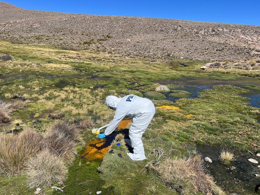 Detectives de la Brigada Investigadora de Delitos Contra el Medioambiente y Patrimonio Cultural de la PDI Arica y peritos del Laboratorio de Criminalística Regional, realizaron diligencias investigativas en el marco del derrame de 25 mil litros de aceite en los bofedales del Parque Nacional Lauca y las aguas del Lago Chungará, durante la tarde del pasado jueves.