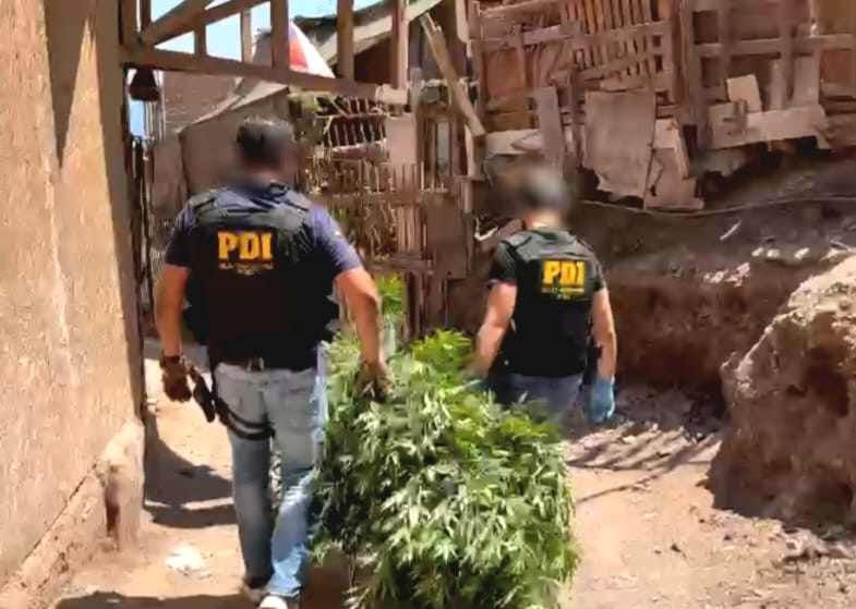 En un nuevo golpe contra el delito, detectives de la Brigada de Homicidios de la Policía de Investigaciones (PDI) detectaron y desmantelaron una plantación de marihuana en plena vía pública, dentro de un campamento ubicado en el sector norte de Antofagasta.