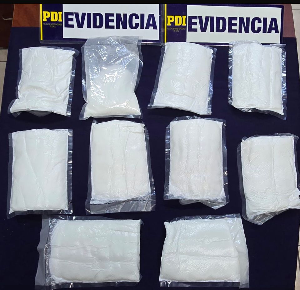 La mujer fue sorprendida en primera instancia por personal DGAC, quienes alertaron a detectives de la Avanzada Antinarcóticos Chacalluta de la PDI Arica, ubicando adosados a sus piernas, 10 paquetes contenedores de ketamina en polvo, que en total sumaron 2 kilos 530 gramos, por lo que fue detenida en el lugar.
