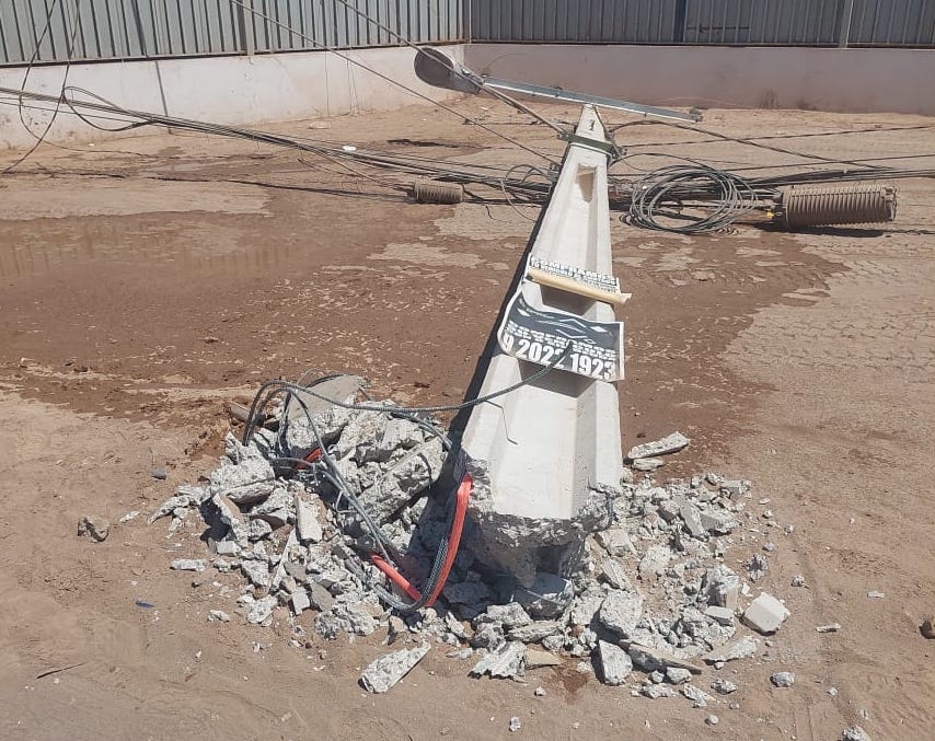CGE informó que la interrupción de suministro eléctrico que afecta a alrededor de 10 mil clientes en el sector Santa Rosa y avenida Las Parcelas, en Alto Hospicio, se debe a un accidente de tránsito ocurrido en calle Cardenal Caro, cerca de Padre Hurtado, donde un vehículo impactó un poste de la red de media tensión.