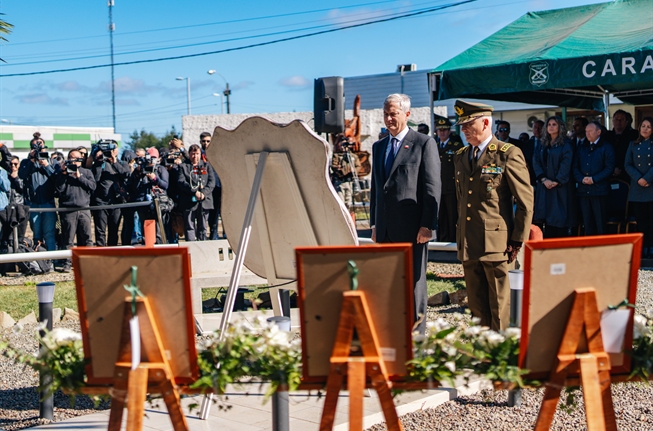 El Mandatario estuvo acompañado  de los ministros de Seguridad, Trinidad Steinert, y Segpres, José García Ruminot; del General Director de Carabineros, Marcelo Araya, y de las viudas de los carabineros mártires, suboficiales mayores Carlos Cisterna, Sergio Arévalo y Misael Vidal. En la ceremonia se confirió el nombre patronímico de ellos a tres unidades mecanizadas de vehículos blindados que custodian la Región de Biobío al alero del estado de excepción.