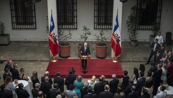 En una ceremonia realizada en el Palacio de La Moneda, el Mandatario efectuó un saludo protocolar a un centenar de miembros del Cuerpo Diplomático y representantes de organismos internacionales.