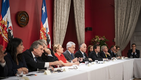 También encabezó una reunión de trabajo con todo su gabinete en el Palacio de La Moneda, donde se discutieron los acuerdos presentados por el Presidente Piñera por la paz y contra la violencia; por la justicia para impulsar una agenda social hacia un Chile más justo; y una nueva Constitución en el marco de la institucionalidad democrática.