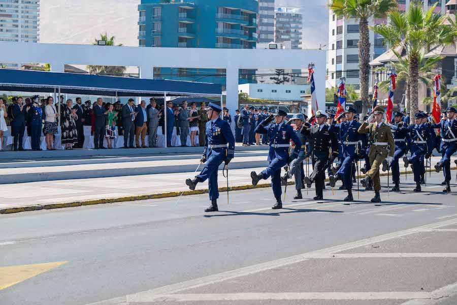 -Con desfile terrestre y aéreo, donde participaron las máximas autoridades civiles y militares de la Región de Tarapacá.