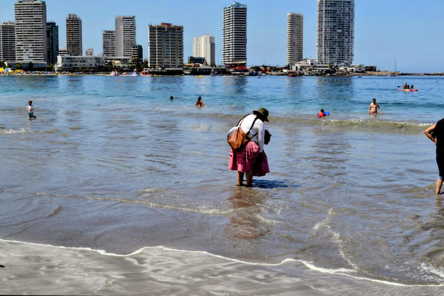¡No lo digo yo! También lo sienten, siendo testigos y protagonistas, una familia boliviana cuyos rostros develaban que desconocían el mar y la rada. Mojaban sus pies con temor, con las manos refrescaban la cara y medían en silencio la distancia entre la tierra y el inexpugnable océano.