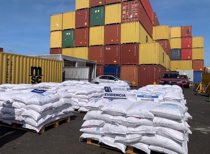 Esta carga ilícita se suma a las 146 toneladas ya incautadas en marzo en los puertos de Arica y de Iquique, y otras 43 toneladas de carbonato de sodio descubiertas en Arica a fines de octubre del año pasado.