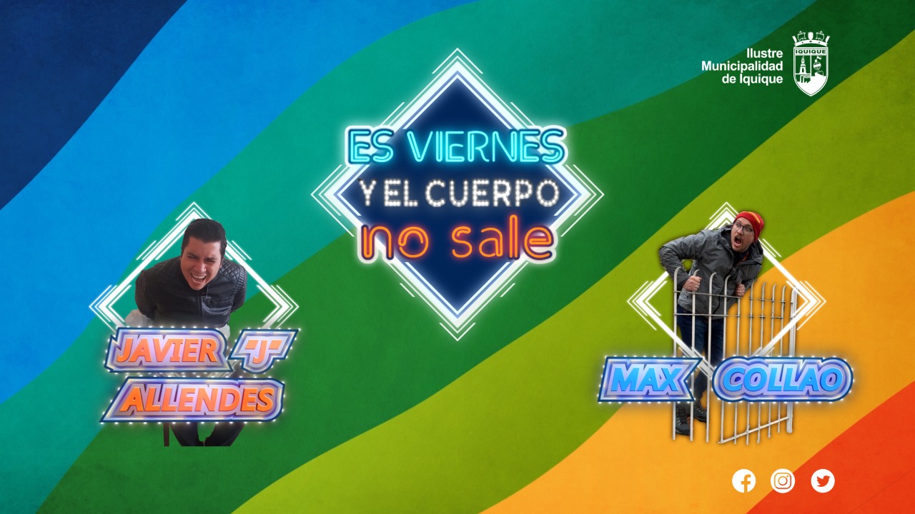 “Es Viernes y el Cuerpo No Sale” es el nombre del programa conducido por el periodista Max Collao y el comunicador Javier Allendes, el que en cada edición tendrá un invitado o invitada especial con quien las iquiqueñas e iquiqueños podrán interactuar a través de la mencionada red social.