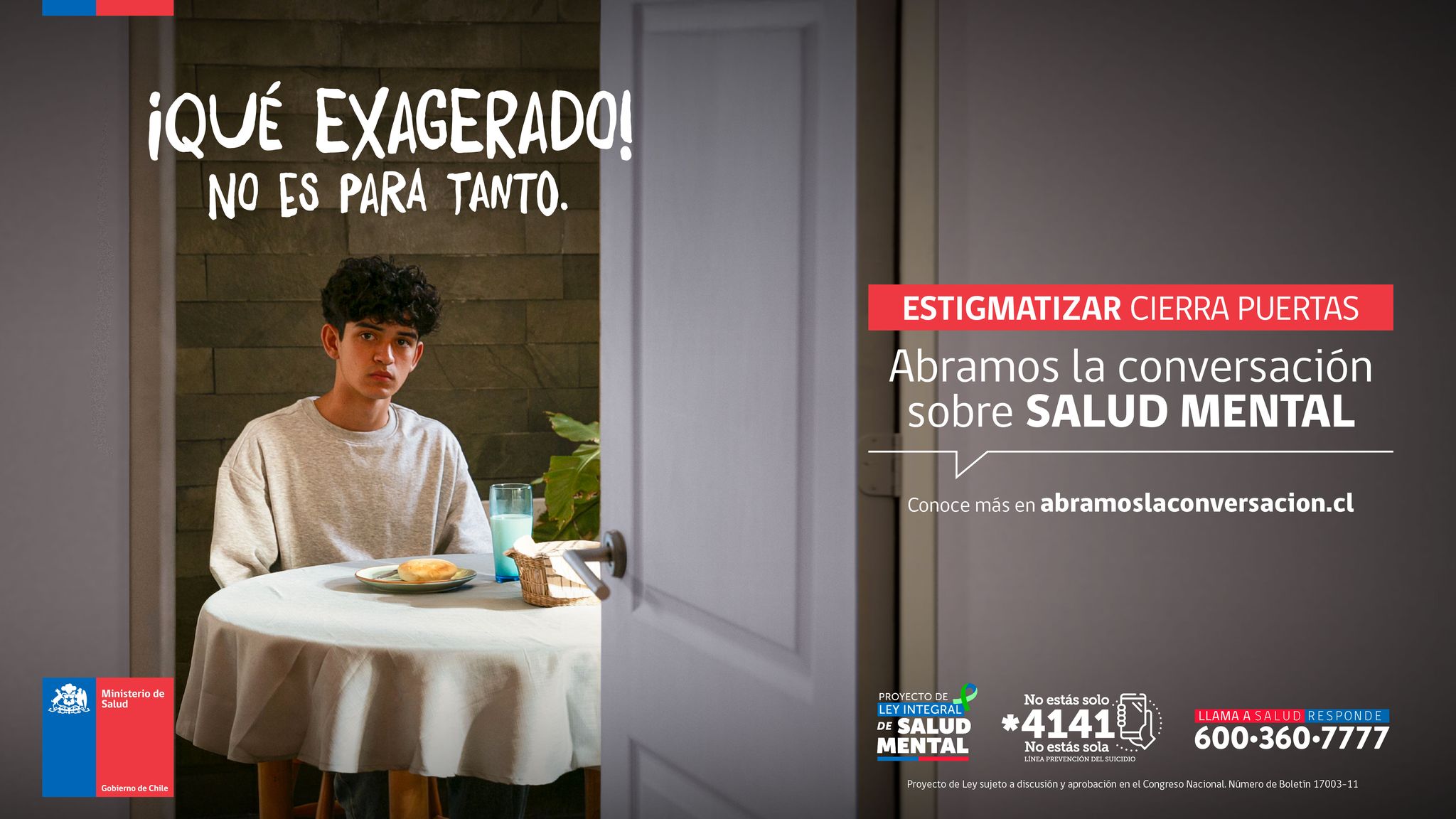 Por primera vez en la historia, el Estado de Chile lanza una campaña comunicacional nacional dedicada a la salud mental, denominada “Estigmatizar cierra puertas. Abramos la conversación a la salud mental”, cuyo objetivo es instalar el tema en la conversación pública y transformar la cultura del silencio en una de diálogo y apoyo.