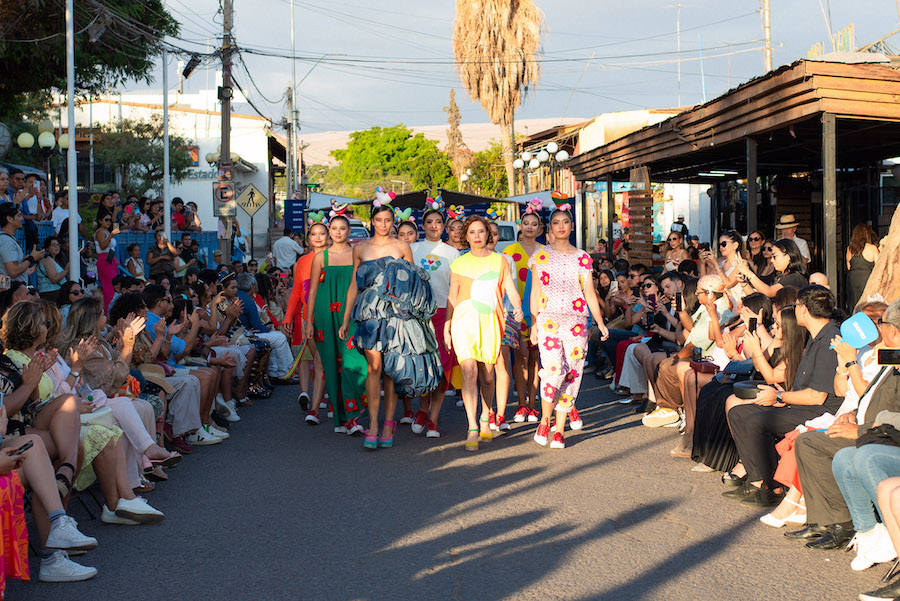 La pasarela se desarrolló en la plaza principal de Pica, donde diseñadores emergentes y consolidados presentaron colecciones inspiradas en la sostenibilidad, el reciclaje textil y la identidad territorial del norte de Chile. El desfile fue el cierre de una agenda que comenzó en Iquique con el VI Congreso CIMACS, dedicado a la innovación en moda circular y gestión de residuos textiles.