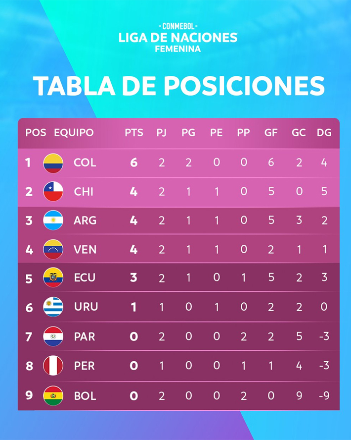 Con este resultado, Chile llega a los 4 puntos y es escolta de Colombia, que suma seis unidades al ganar sus primeros dos encuentros (a Perú y Ecuador).