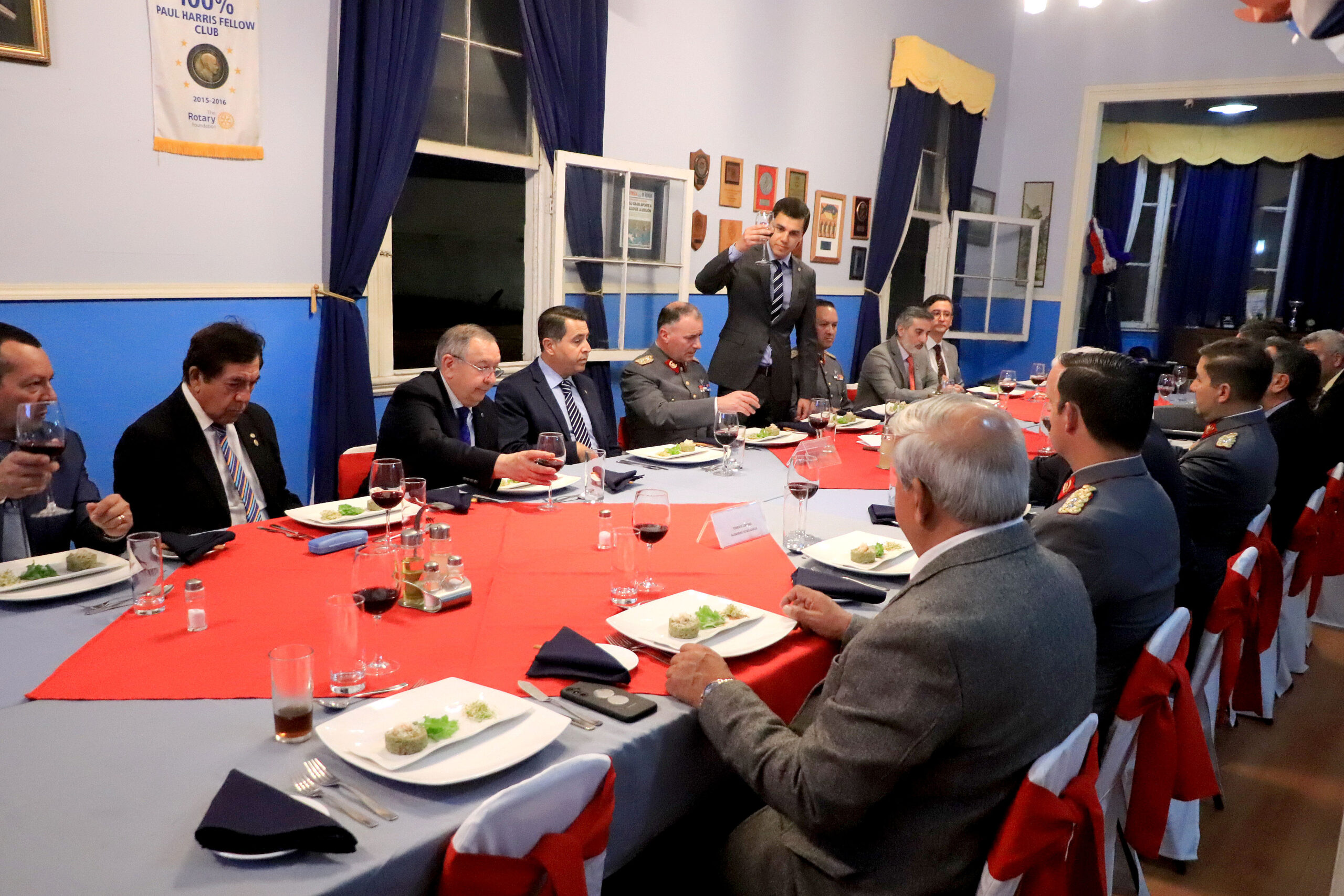 El presidente de la institución rotaria, Francisco Canales Díaz, presidió la actividad rotaria, dando la bienvenida, mientras que el rotario Sergio Telchi, destacó el rol del Ejército, su historia y áreas de misión, para dar cumplimiento a la Constitución Política de la República y otros cuerpos legales, resaltando que el Ejército desarrolla su quehacer en cinco áreas de misión, las que orientan el trabajo y enfocan sus esfuerzos y recursos. Mediante este accionar, se alcanzan los resultados que la autoridad y la sociedad esperan de la Institución, en seguridad e intereses territoriales, defensa de la soberanía e integridad territorial, cooperación internacional y apoyo a la política exterior, emergencia nacional y protección civil y contribución al desarrollo nacional y acción del Estado.