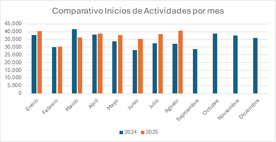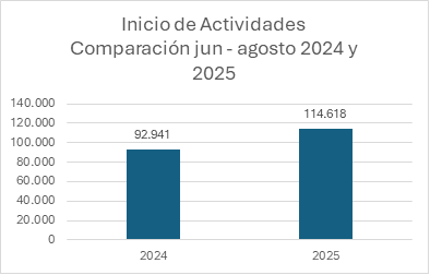 Si se considera solo el segundo semestre de 2024, el inicio de actividades aumentó un 13,8%, respecto del mismo periodo anterior. La mayor alza mensual se registró en octubre, mes de la publicación de la Ley de Cumplimiento de las Obligaciones Tributarias, cuando se hizo el anuncio de esta medida, con un alza del 30,8%.