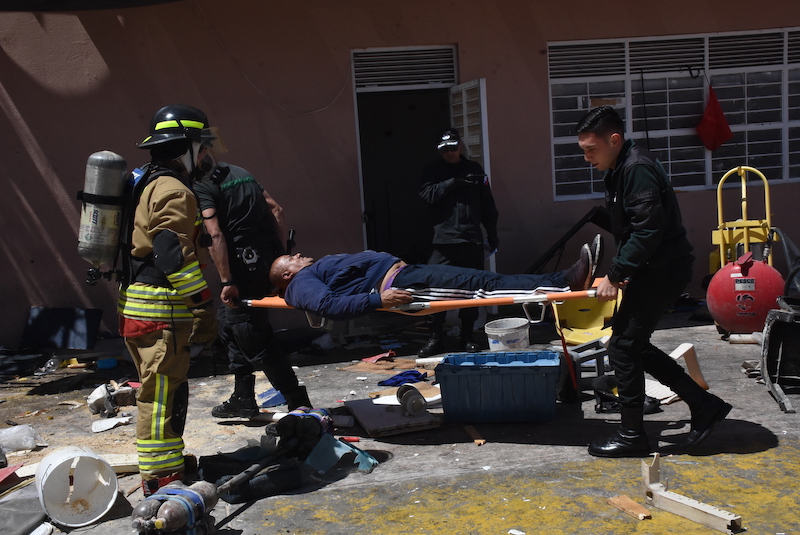Mientras que en la garita 3, se informó de la grave lesión del centinela apostado en el lugar, quien sufrió el desprendimiento de cadera, lo que obligó a los equipos de emergencia a extremar sus esfuerzos para poder bajar al funcionario de su puesto de vigilancia, realizando una inteligente maniobra, para no provocar más lesiones al afectado.
