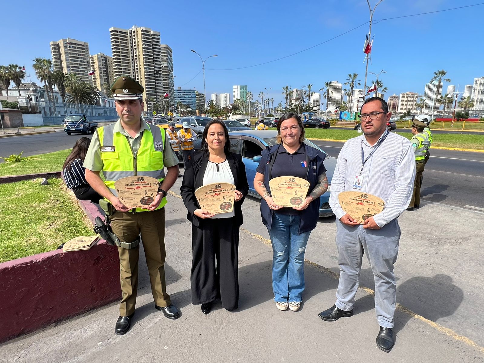 Un llamado a mantener conductas de responsabilidad, a respetar las normas del tránsito y a evitar que las personas manejen bajo los efectos del alcohol y otras drogas durante estas Fiestas Patrias, entregó la Subsecretaría de Prevención del Delito junto a SENDA Tarapacá, Seremi de Transportes y Carabineros, en el marco de la campaña preventiva “Este 18 con prevención, celebramos mejor”.